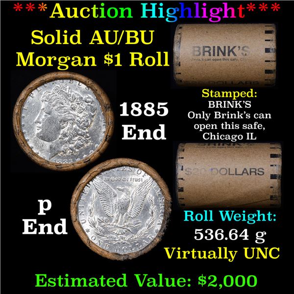 ***Auction Highlight*** AU/BU Slider Brinks Shotgun Morgan $1 Roll 1885 & P Ends Virtually UNC (fc)