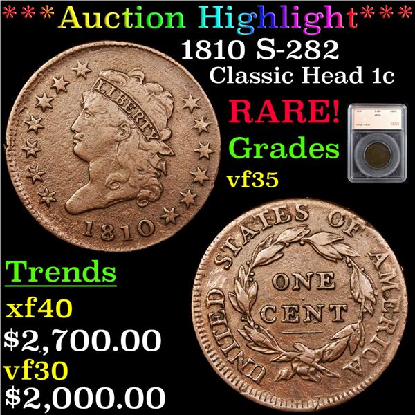 **Auction highlight*** 1810 S-282 Classic Head Large Cent 1c Graded vf35 By SEGS (fc)375 - **Auction highlight*** 1810 S-282 Classic Head Large Cent 1c Graded vf35 By SEGS (fc)