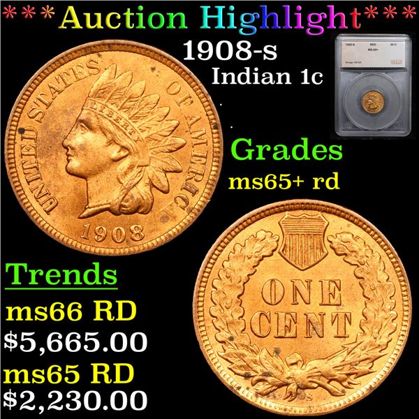 ***Auction Highlight*** 1908-s Indian Cent 1c Graded ms65+ rd BY SEGS (fc)384 - ***Auction Highlight*** 1908-s Indian Cent 1c Graded ms65+ rd BY SEGS (fc)