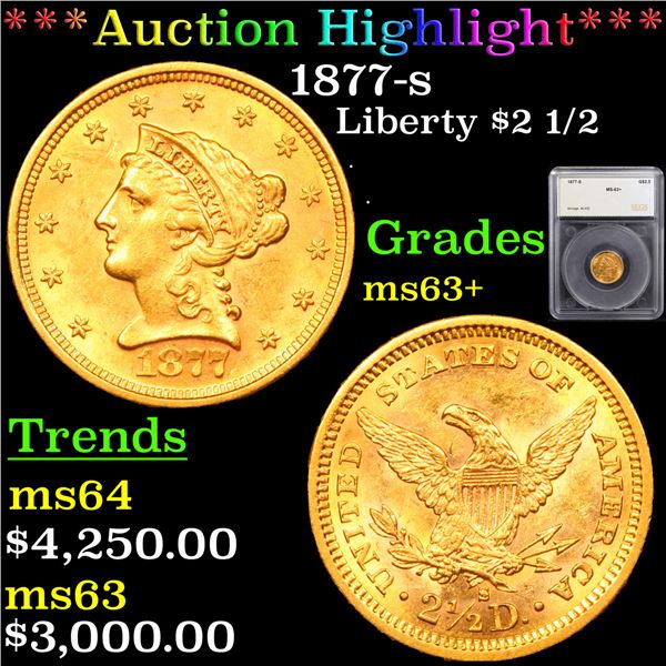 ***Auction Highlight*** 1877-s Gold Liberty Quarter Eagle $2 1/2 Graded ms63+ By SEGS.