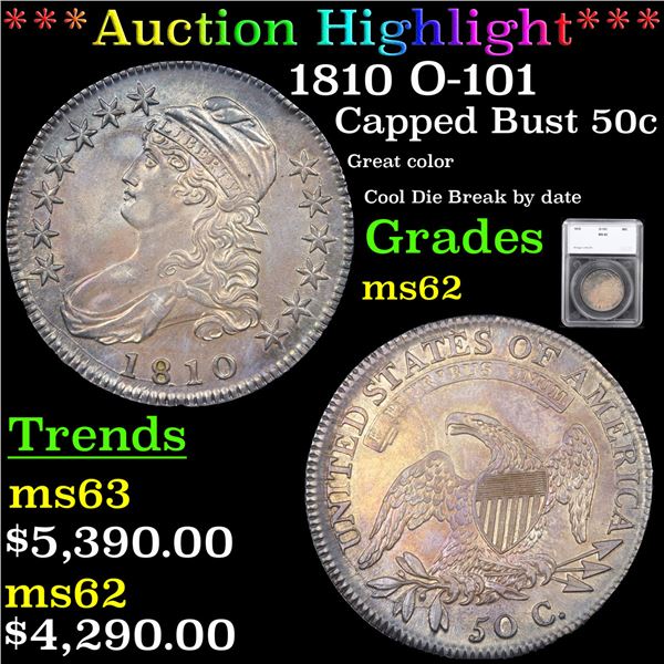 ***Auction Highlight*** 1810 O-101 Capped Bust Half Dollar 50c Graded ms62 By SEGS. A Corey's Pick, Bid to Win Coin