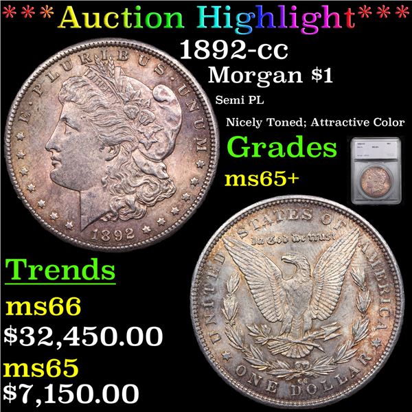 ***Auction Highlight*** 1892-cc Morgan Dollar $1 Graded ms65+ BY SEGS. A Corey's Pick, Bid to Win, Don't let it get Away Coin