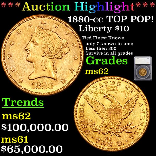 ***Auction Highlight*** 1880-cc TOP POP! Gold Liberty Eagle $10 Graded ms62 By SEGS. HIGHLIGHT of the NIGHT - Up for Auction is a significant R