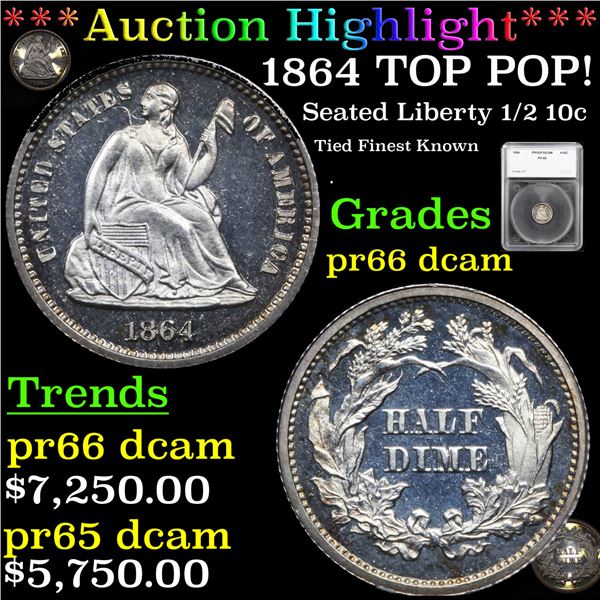 ***Auction Highlight*** 1864 TOP POP! Seated Liberty Half Dime 1/2 10c Graded pr66 dcam By SEGS. A Corey's Pick, Bid to Win, Don't l...