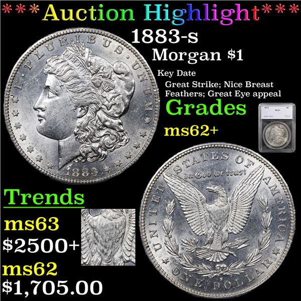 ***Auction Highlight*** 1883-s Morgan Dollar $1 Graded ms62+ By SEGS. A Corey's Pick, Bid to Win Coin