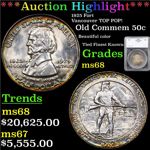 ***Auction Highlight*** 1925 Fort Vancouver TOP POP! Old Commem Half Dollar 50c Graded ms68 By SEGS 416 - ***Auction Highlight*** 1925 Fort Vancouver TOP POP! Old Commem Half Dollar 50c Graded ms68 By SEGS