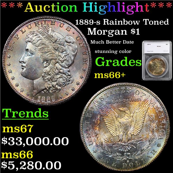***Auction Highlight*** 1889-s Rainbow Toned Morgan Dollar $1 Graded ms66+ By SEGS. A Corey's Pick, Bid to Win, Don't let it get Awa...
