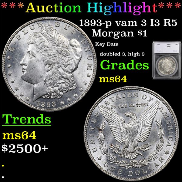 ***Auction Highlight*** 1893-p vam 3 I3 R5 Morgan Dollar $1 Graded ms64 By SEGS.