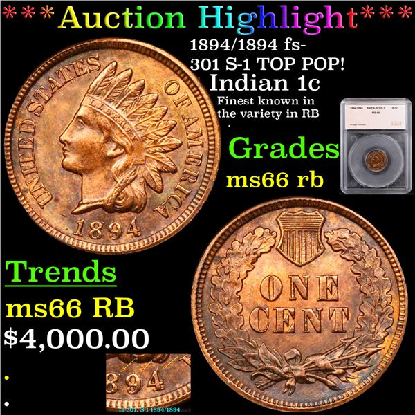 ***Auction Highlight*** 1894/1894 fs-301 S-1 TOP POP! Indian Cent 1c Graded ms66 rb By SEGS (fc)427 - ***Auction Highlight*** 1894/1894 fs-301 S-1 TOP POP! Indian Cent 1c Graded ms66 rb By SEGS (fc)