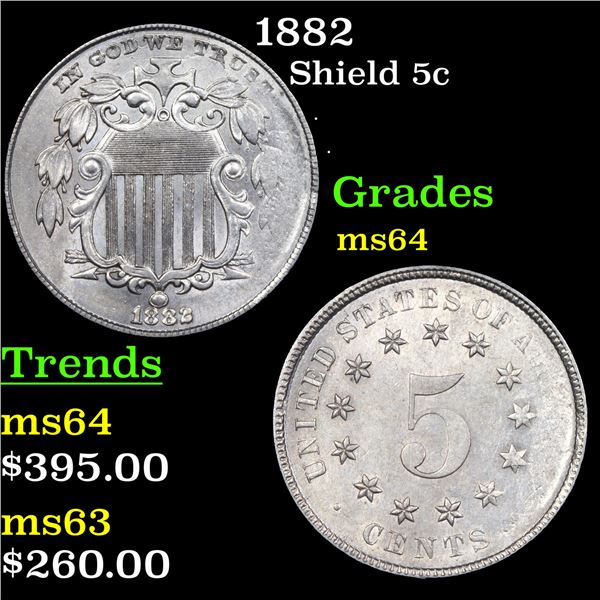 1882 Shield Nickel 5c Grades Choice Unc374 - 1882 Shield Nickel 5c Grades Choice Unc