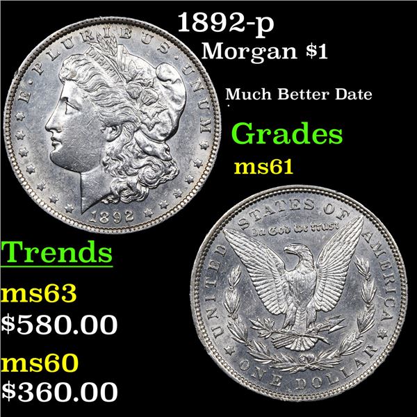 1892-p Morgan Dollar $1 Grades BU+379 - 1892-p Morgan Dollar $1 Grades BU+