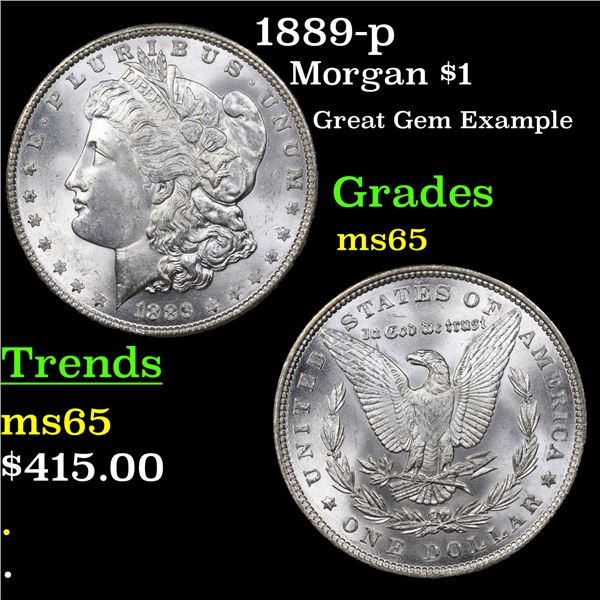 1889-p Morgan Dollar $1 Grades GEM Unc383 - 1889-p Morgan Dollar $1 Grades GEM Unc