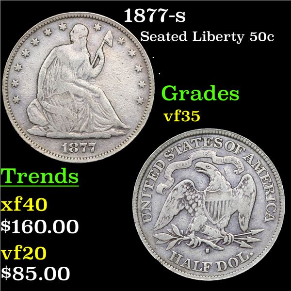 1877-s Seated Half Dollar 50c Grades vf++390 - 1877-s Seated Half Dollar 50c Grades vf++