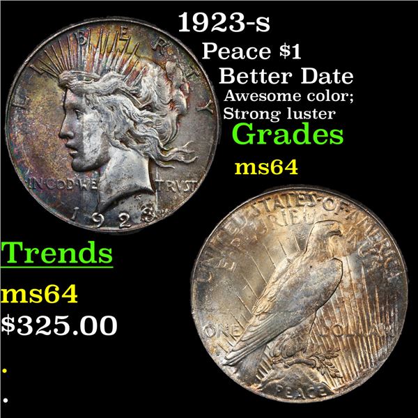 1923-s Peace Dollar $1 Grades Choice Unc392 - 1923-s Peace Dollar $1 Grades Choice Unc