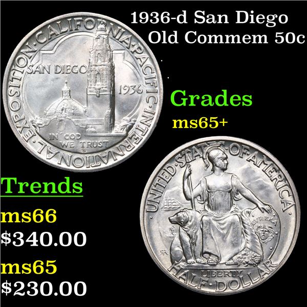 1936-d San Diego Old Commem Half Dollar 50c Grades GEM+ Unc.