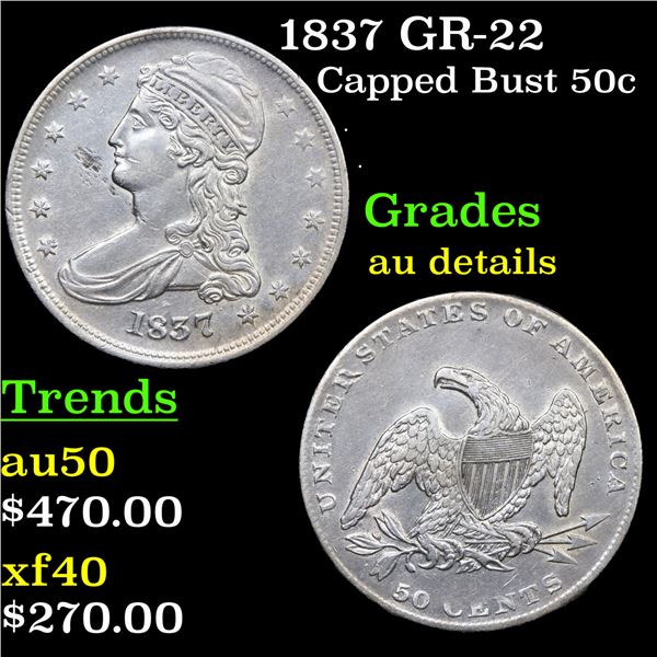 ***Auction Highlight*** 1836 Reeded Edge GR-12 Capped Bust Half Dollar 50c Graded xf45 details By SE