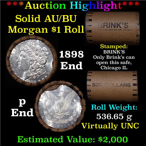 ***Auction Highlight*** AU/BU Slider Brinks Shotgun Morgan $1 Roll 1898 & P Ends Virtually UNC (fc)