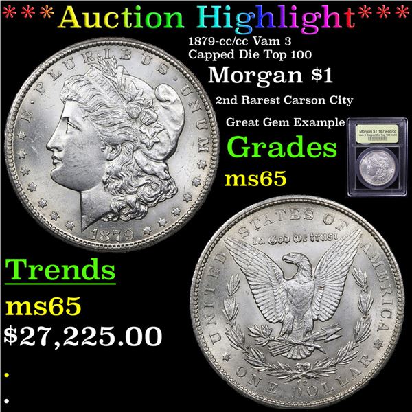 ***Auction Highlight*** 1879-cc /cc Vam 3 Capped Die Top 100 Morgan Dollar $1 Graded GEM Unc By USCG720 - ***Auction Highlight*** 1879-cc /cc Vam 3 Capped Die Top 100 Morgan Dollar $1 Graded GEM Unc By USCG