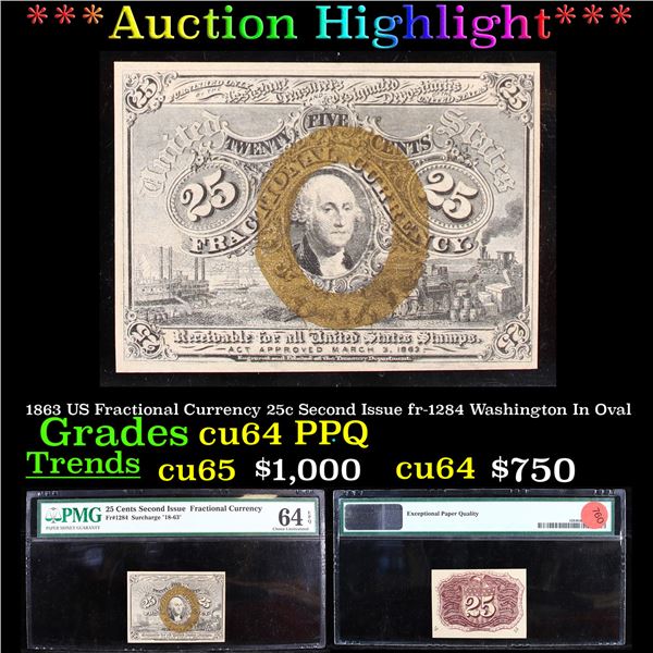 ***Auction Highlight*** 1863 US Fractional Currency 25c Second Issue fr-1284 Washington In Oval Graded cu64 PPQ By PMG.