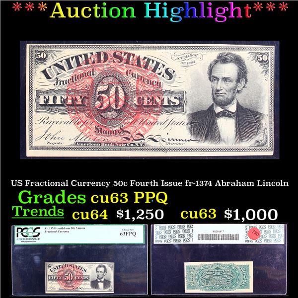 ***Auction Highlight*** PCGS US Fractional Currency 50c Fourth Issue fr-1374 Abraham Lincoln Graded cu63 PPQ By PCGS. Part of the Fourth Issue