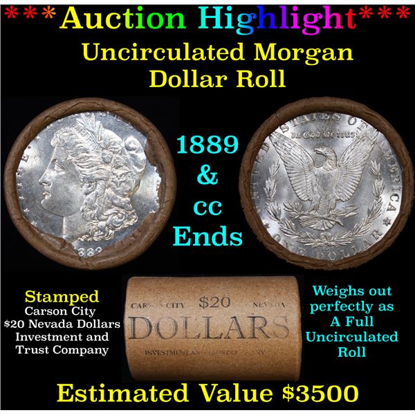 ***Auction Highlight*** 1889 & CC Uncirculated Morgan Dollar Shotgun Roll. Uncirculated Morgan Dollar Roll, Superb Ends, Carson City, Nev...