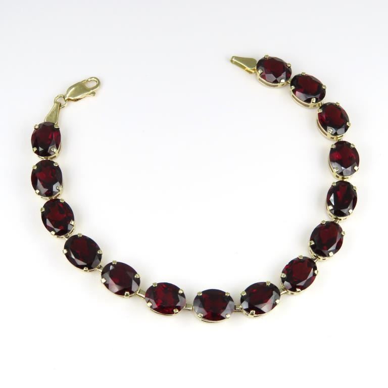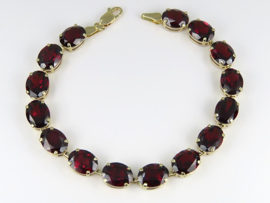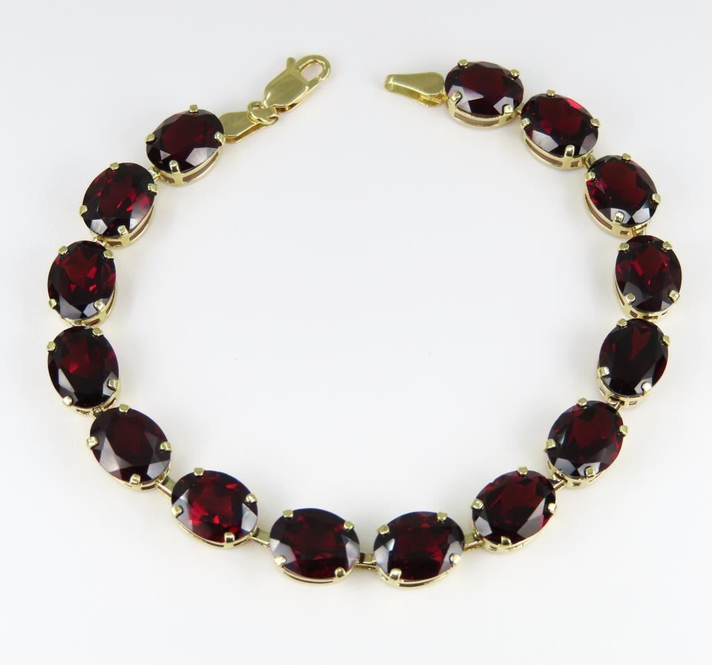 featuring 15 vivid Red oval Garnets weighing approx. 25.00-30.00 carats total set in 14 karat yellow gold. Beautifully crafted piece.