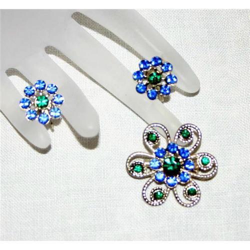 <tr><td>Type:Sapphire Blue & Emerald Green Rhinestone Brooch/Pin & Earrings Set</td></tr>