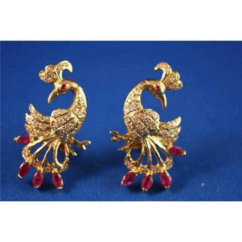 <tr><td>Title:Fabulous Ruby and Diamond Gold Peacock Earrings</td></tr>