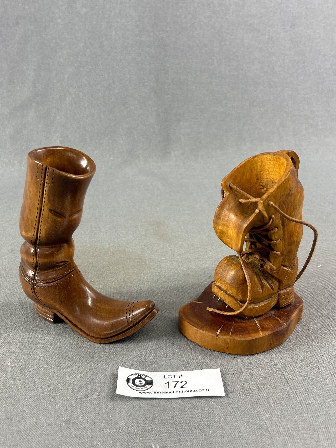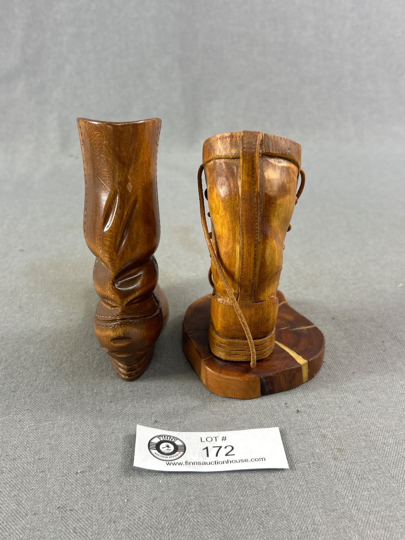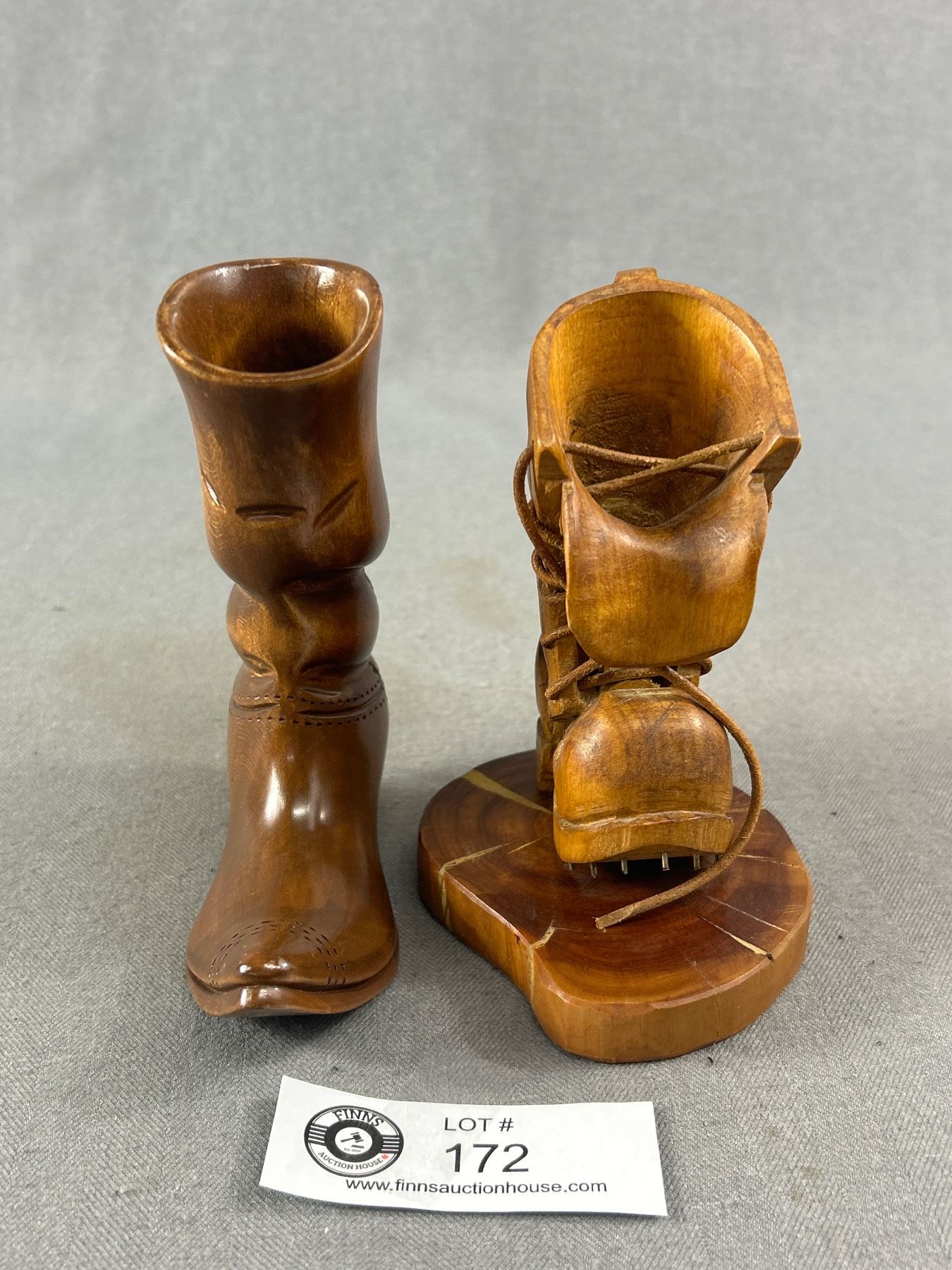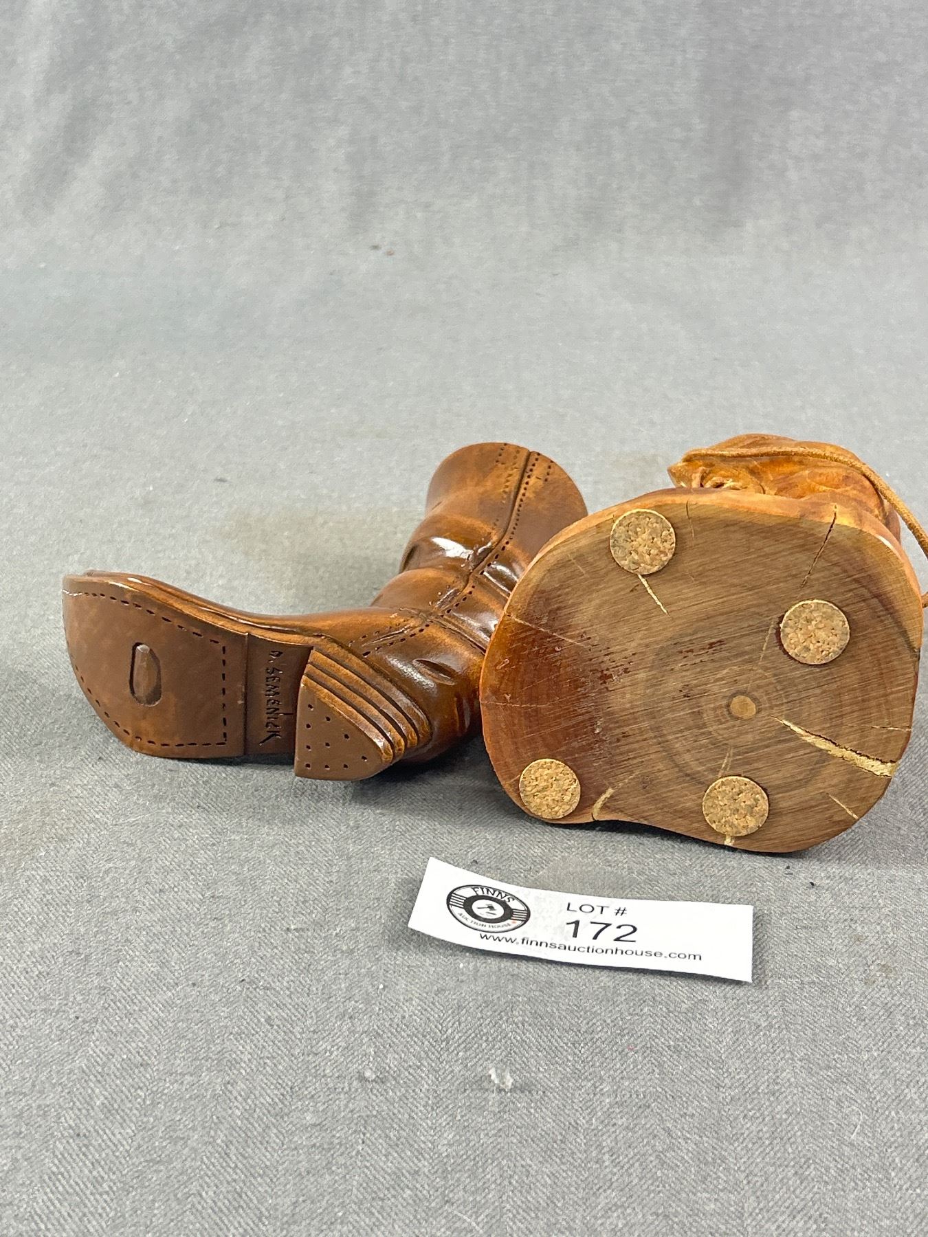 Fabulous Vintage Hand Carved Wood Logging Boot and Cowboy Boot - Signed D. Semenick
