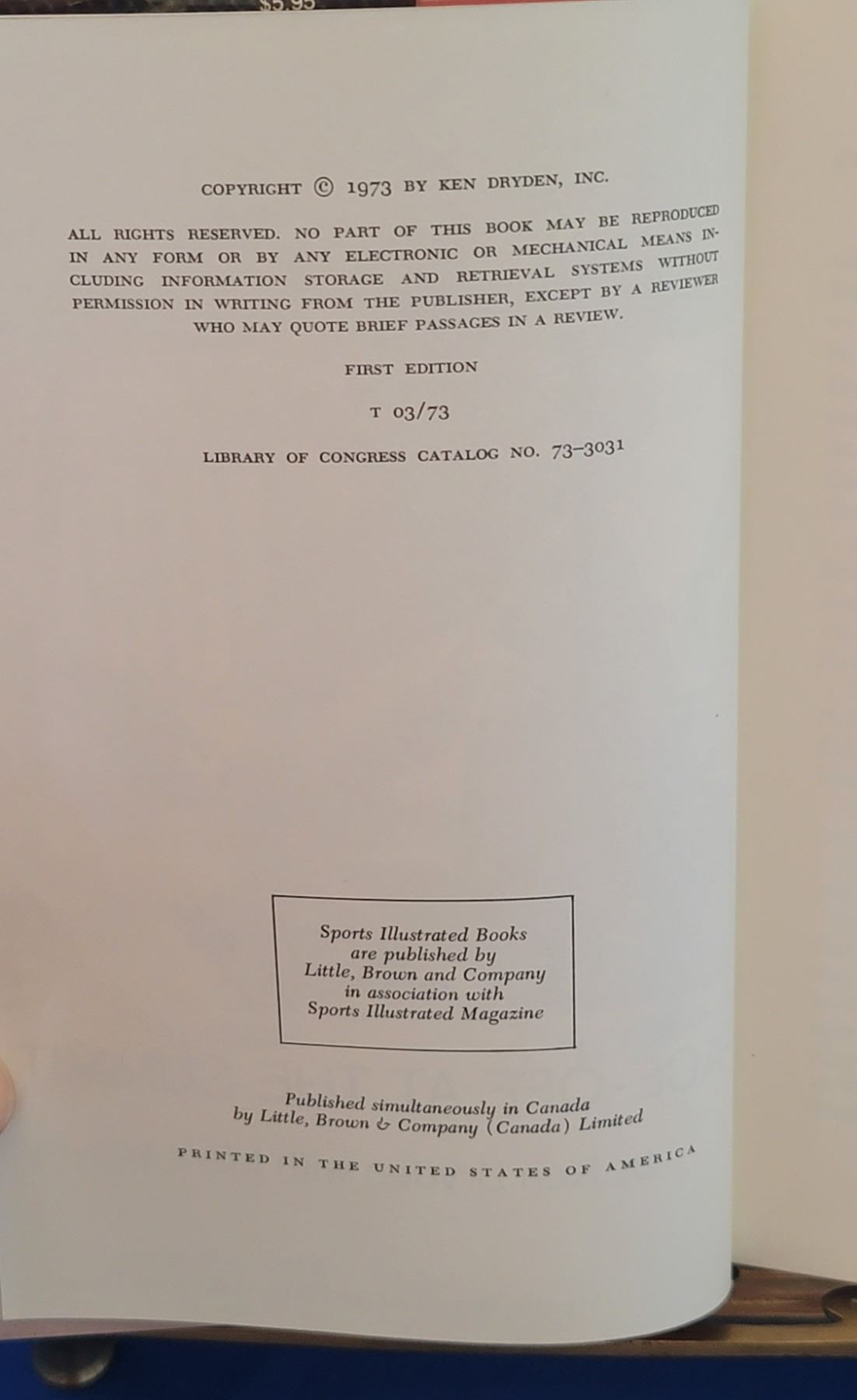Authors: Ken Dryden with Mark Mulvoy. Third edition published in 1973. Paperback.