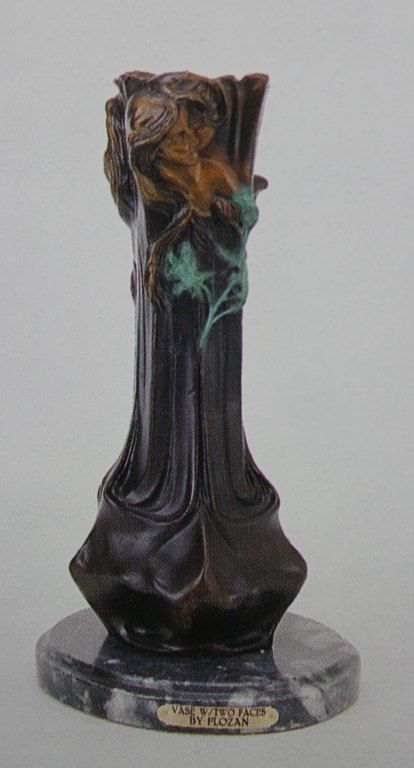 "Faces Vase" Bronze Sculpture - After Loran - Museum Brown Finish - Mounted On A Fine Italian Marble Base - Beautifully Detailed - Signed - Mint Condition - 18"H X 8"W - Lost Wax Cast Bronze