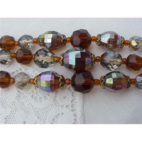 Lovely 3 strands ladies bracelet made from lovely faceted amber and iridiscent graduated beads,US Byer please pay 7.00 for shipping plus insurance,For International byers shipping wold be more.Thank You for looking!