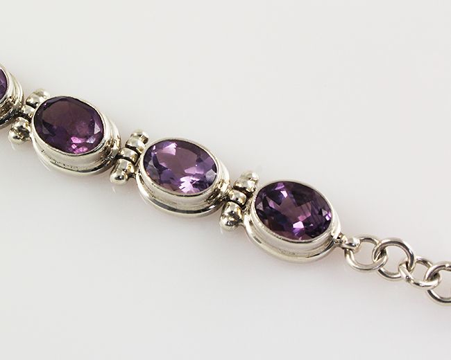 Faceted Amethyst Stone sets in Silver Bezel Bracelet, 1 **|**|** 3 Kings Amethyst Stone Silver Bezel Bracelet, 12.20g ; MSRP: $300