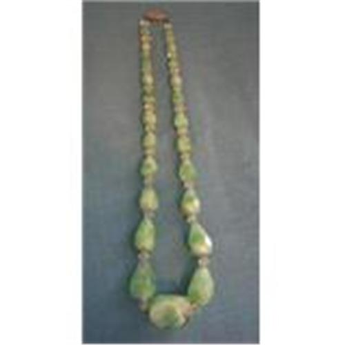</font></strong>This beautiful faceted adventurine beaded necklace with clear crystal spacers is strung on chain. Graduated and ranging in size from 3/8 inch, 1/2 inch, 3/4 inch, 7/8 inch to 1 inch it is in very good + condition and measures 16 1/2 inches long and has a silvertone clasp. Very elegant on anything your wearing, a great way to dress up jeans! An addition to any Vintage Jewelry Collection. <BR>SH & Ins. will be quoted after orders placed. If you have questions contact me and thank you for looking.</font>