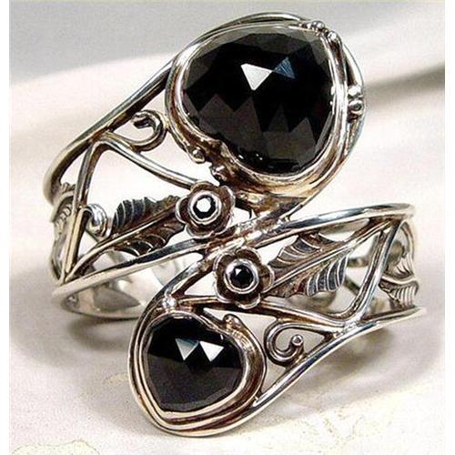 This cuff is simply awesome and will quickly become a coveted piece of jewelry. A masterpiece of sterling leaves and vines, hallmarked 925 sterling, encase the finest FULLY faceted black onyx heart gemstones. The cuff has a height of 59mm. The largest stone measures 25x23x15mm and the smallest 15x14mm. Inside measurement of the cuff is 5.5" with a .5" opening. The gram weight is 65.2.