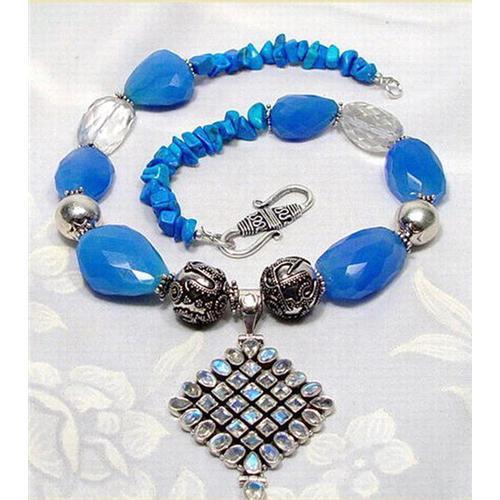 <table width="100%" border="0" cellspacing="0" cellpadding="4"><tr><td><em> </em></td></tr><tr> <td width="100%"> Please Note I only ship to Canada or the continental USA and paypal's payment MUST BE A CONFIRMED ADDRESS <p> Faceted Chalcedony stones make a very bold dramatic statement. The largest stones 29x21mm with the smallest measuring in at 21x14mm. The moonstone silver center had 66mm with a width of 43 so it is a very dramatic piece. The overall length of the necklace is 17" and is finished to perfection with an elaborate 37mm 925 silver 's' closure. (03-754) </td></tr><tr> <td> </td></tr><tr> <td>Reference #: 03_754</td></tr><tr><td>Condition:new</td></tr><tr><td>Year:2005</td></tr><tr><td>Title:Faceted Chalcedony~SILVER~ Moonstone~122g </td></tr><tr><td>Location:Saskatchewan, Canada</td></tr></table>
