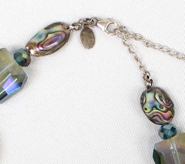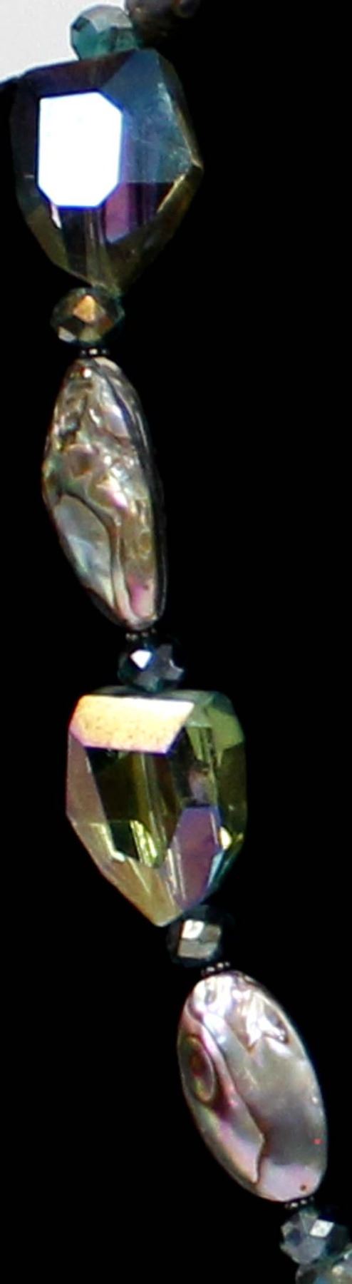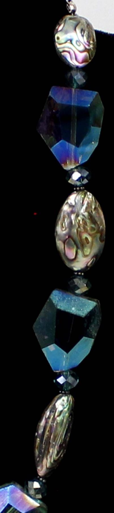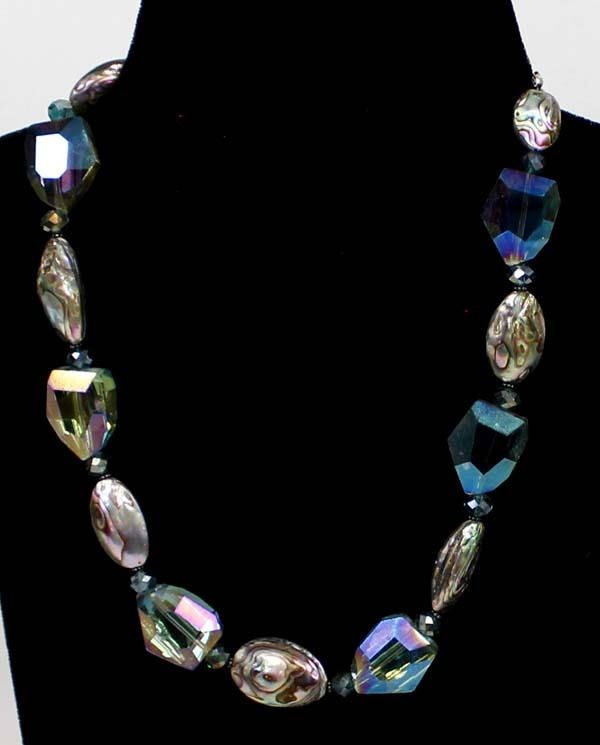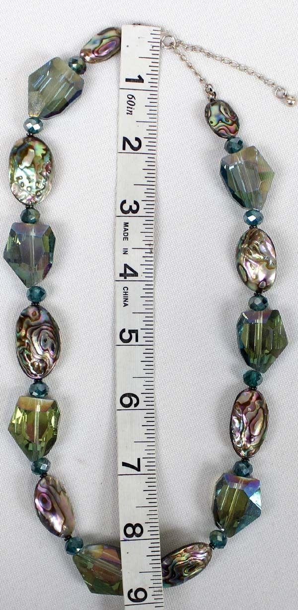 Faceted Iridescent Bead and Abalone Bead Necklace, measures 20''L end to end, adjustable length
