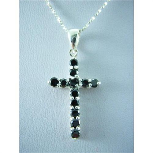 <tr><td>Title:Faceted Onyx Cross Sterling Silver Pendant</td></tr>