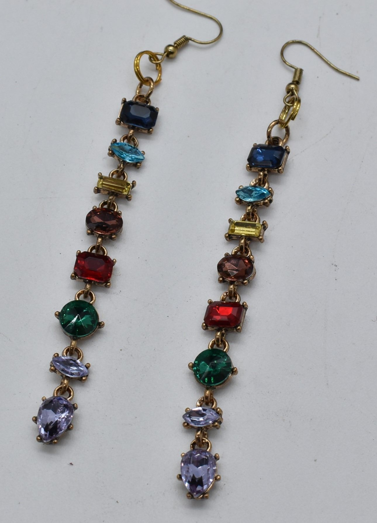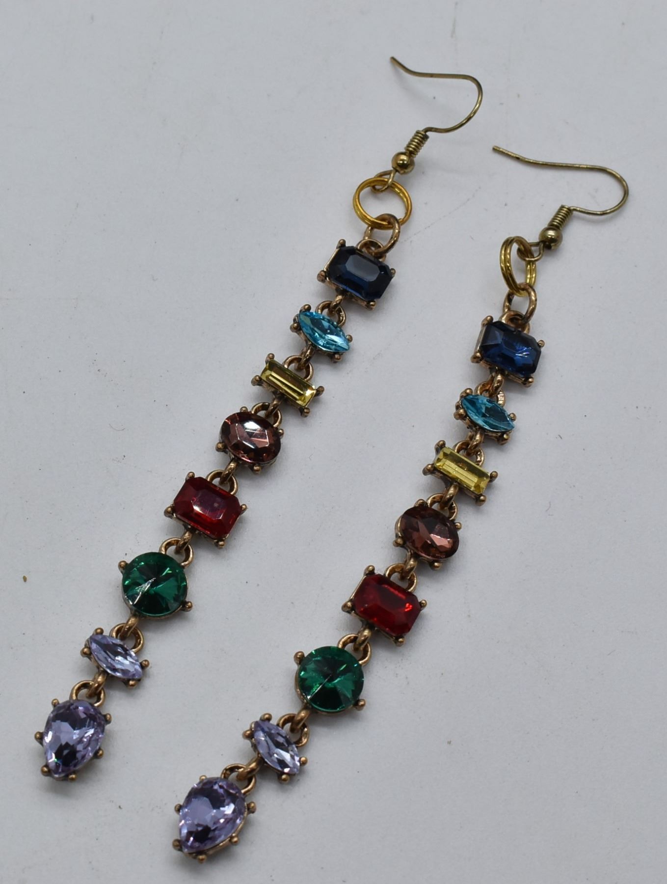 Faceted Rhinestone Dangle Earrings, measure 4.25''L which includes the wire x .25''W, beautiful colors
