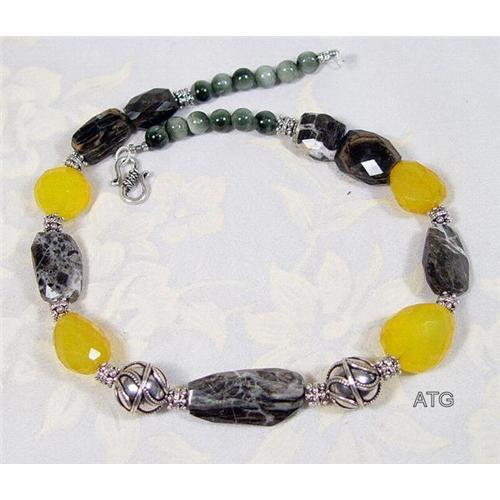 Faceted Snake Agate Chalcedony Sterling Necklace...