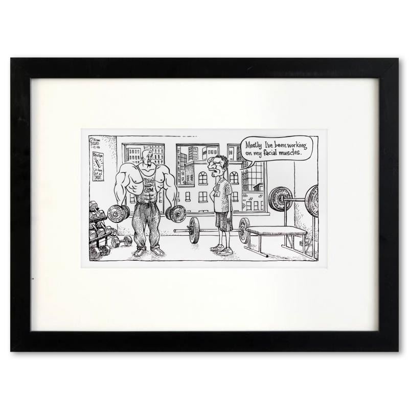 Enter a surreal and satirical world of twisted imagination and award winning creativity. "Facial Muscles" is an original pen & ink drawing on paper by Dan Piraro, creator of the critically acclaimed and award winning comic strip, Bizarro. This piece is hand signed, comes custom framed and includes a letter of authenticity. Measures approximately 14" x 21" (frame), 7" x 13" (image).This item requires special handling and may have a longer than usual turnaround.