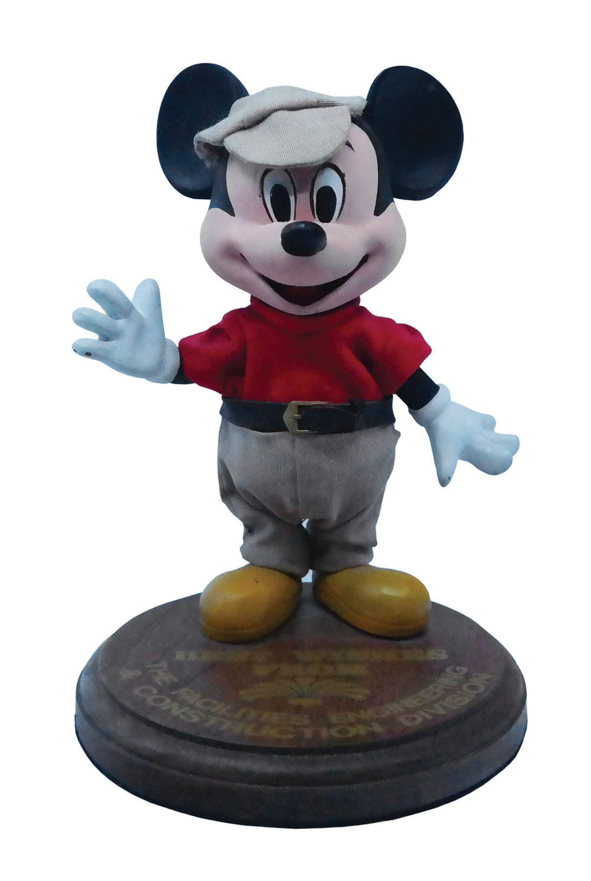 (Disneyland, c.1970s-80s) A custom award given to a member of the Facilities Engineering & Construction Division of Disneyland. The award features Mickey on a wooden base and measures approximately 9" tall. The condition is good with minor surface wear, including a few small chips to the paint.
