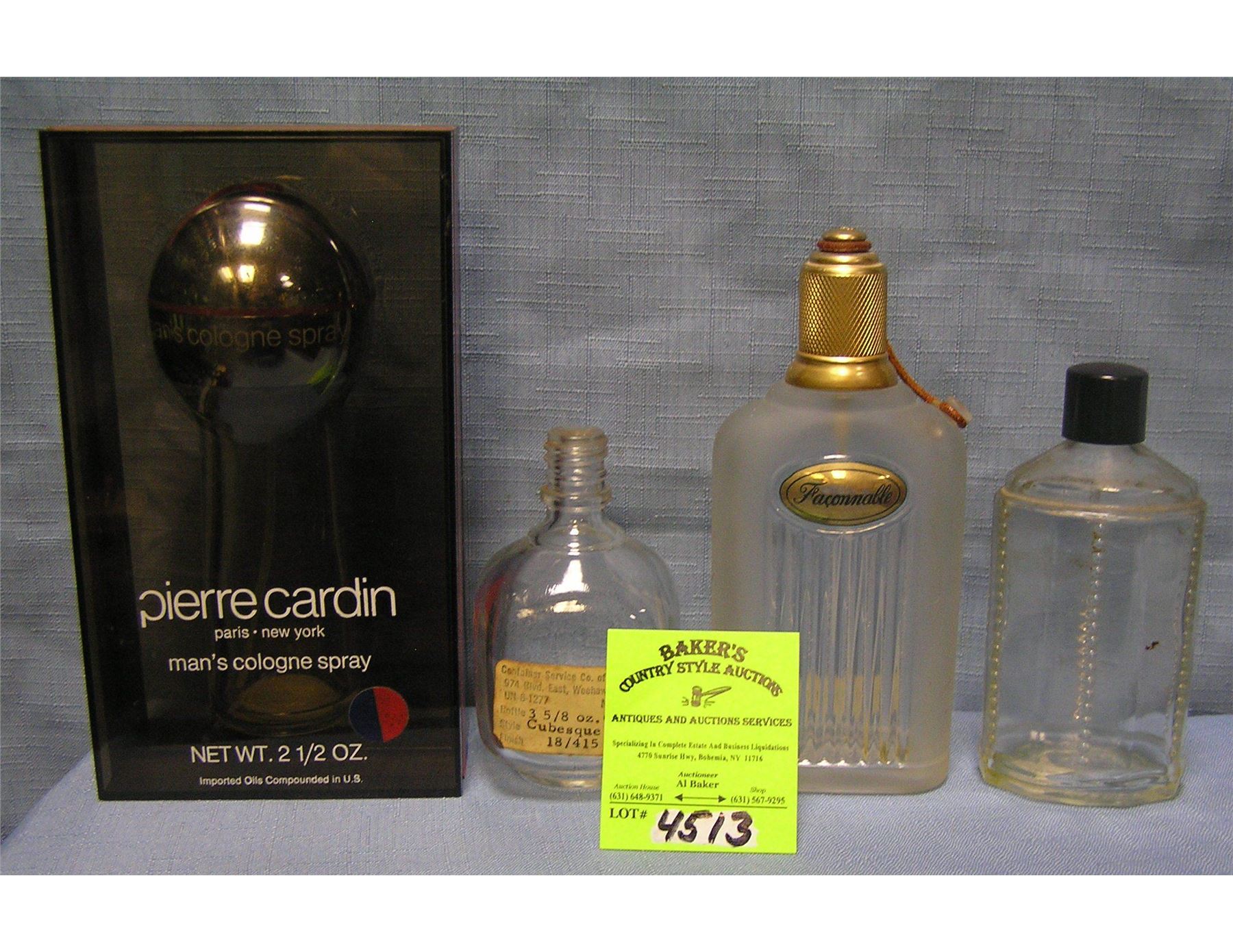 Four vintage cologne bottles including Faconabel, Pierre Cardin and more, bottles only $40.00-$50.00