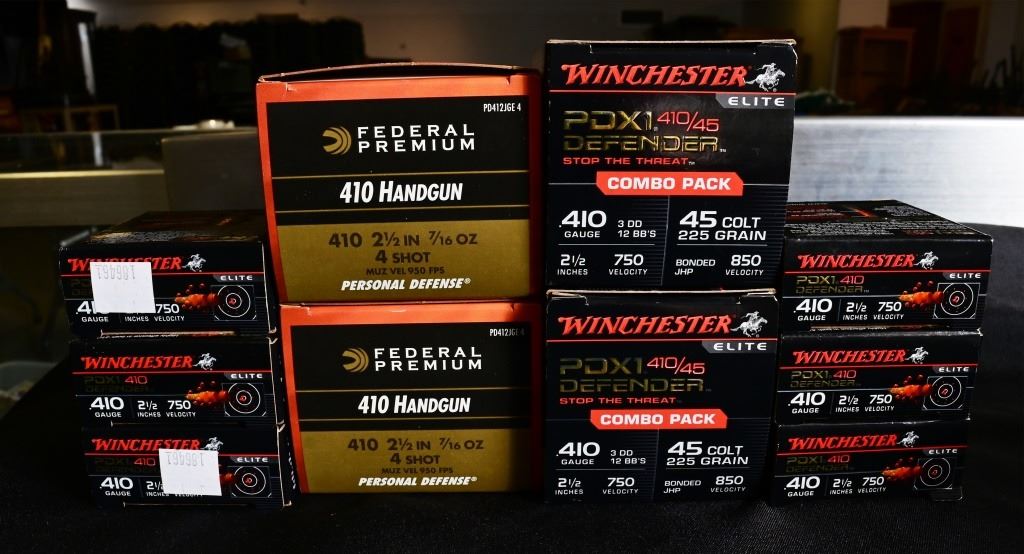 Federal 410 handgun - 50rds. Winchester PDX1 Defender - 60rds. Winchester PDX1 410/45 Colt combo - 40rds