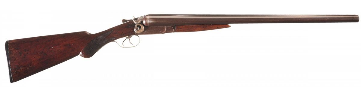Fair. The barrels have a smooth dark brown patina with traces of original blue finish in the protected areas. The remaining metal surfaces have a smooth brown-gray patina showing some mild pitting on the hammers. The revarnished wood is good with a replacement forearm, a couple repairs and some minor pressure dents with a gouge in the crude recut checkering. Mechanically fine.