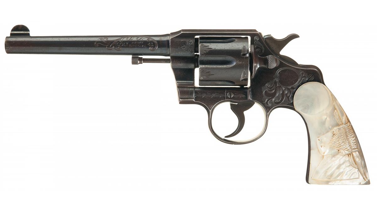 Factory Engraved Colt Army Special Revolver with Factory Letter and Steer Head Carved Pearl Grips