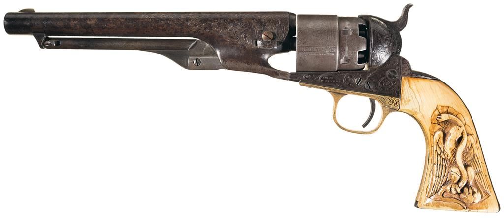Factory Engraved Colt Model 1860 Army Revolver with Relief Carved Ivory Grips