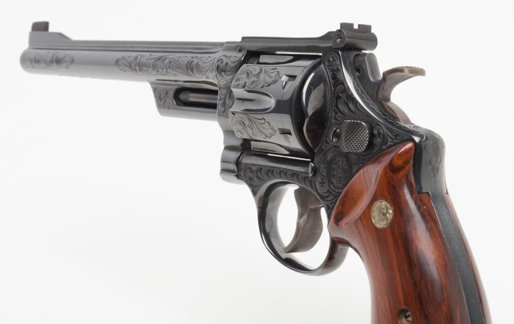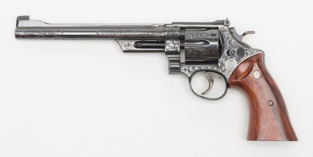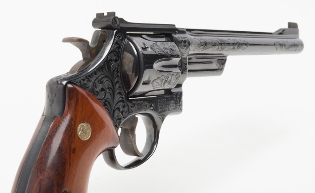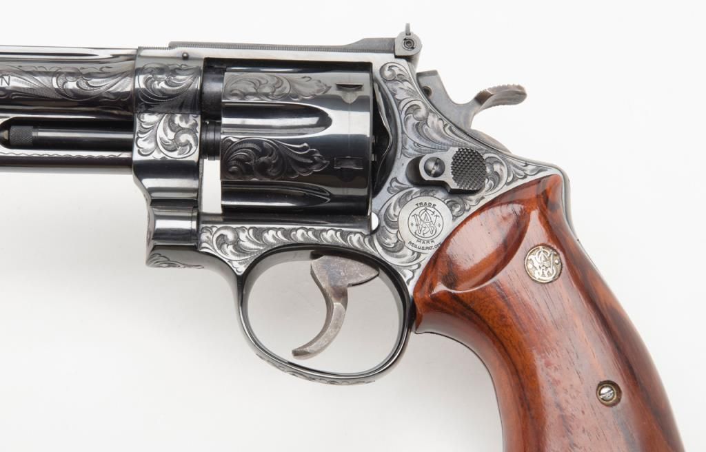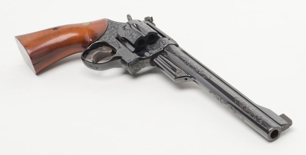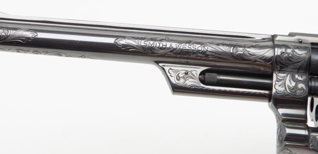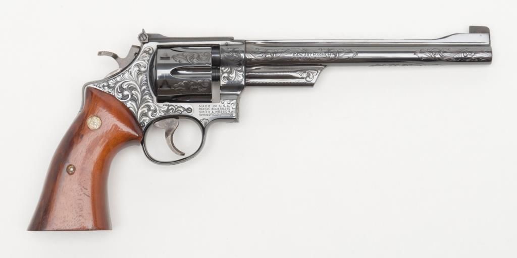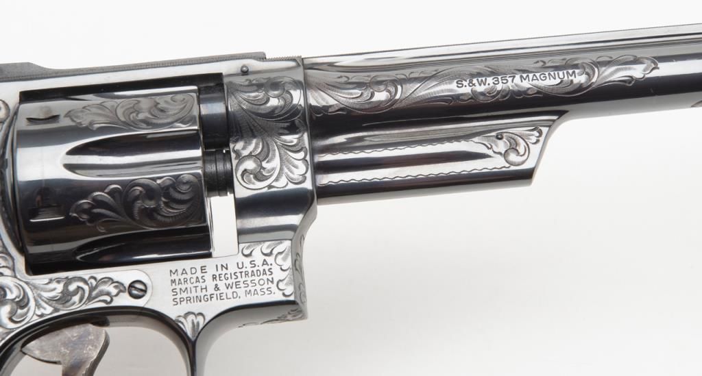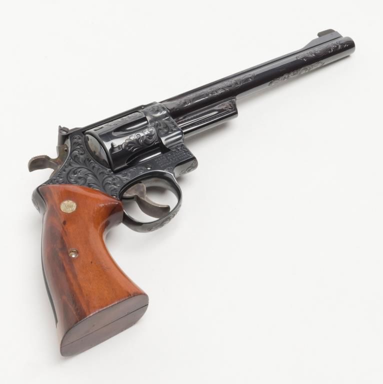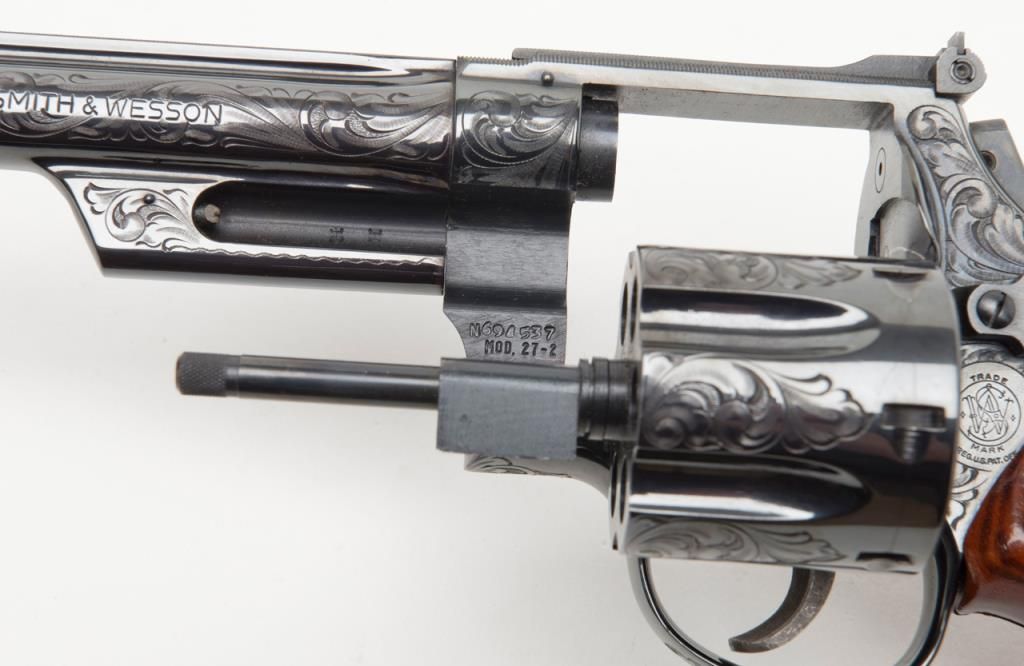 Factory engraved Smith & Wesson Model 27-2 DA revolver, .357 Magnum cal., 8-3/8” barrel, from an old collector’s estate. Est.: $2,000-$4,000.