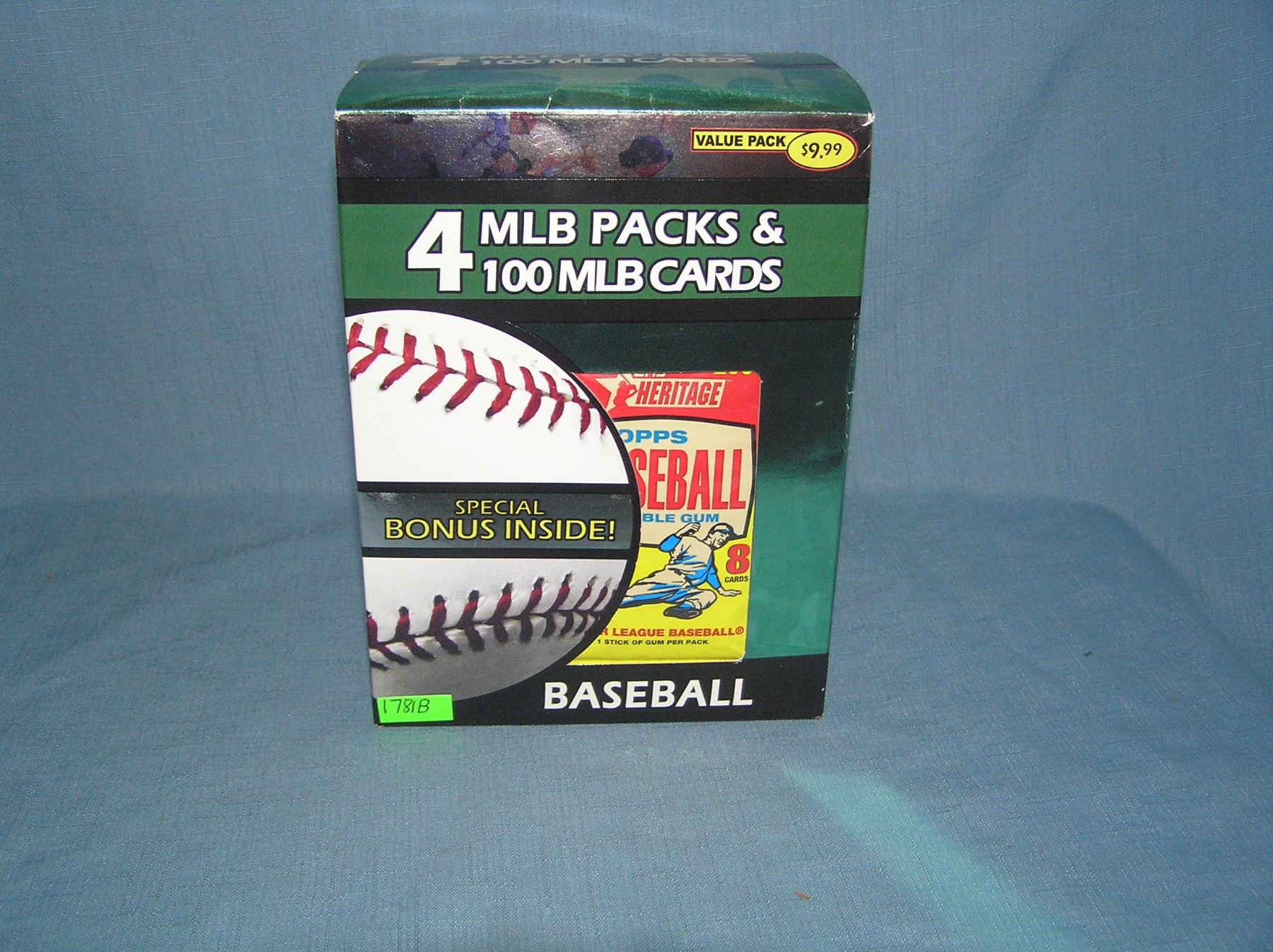 Factory packed box of baseball cards includes 4 packs plus 100 cards est. value $50.00-$55.00