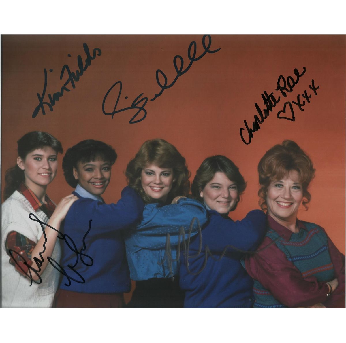 Color cast signed 8x10 by Lisa Welchel, Charlotte Rare, Nancy McKeon, Kim Fields, and Mindy Cohn